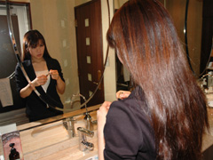 | 化粧直しの最中は、エロいボディーを舐め廻すように観察しても全然OK。 |